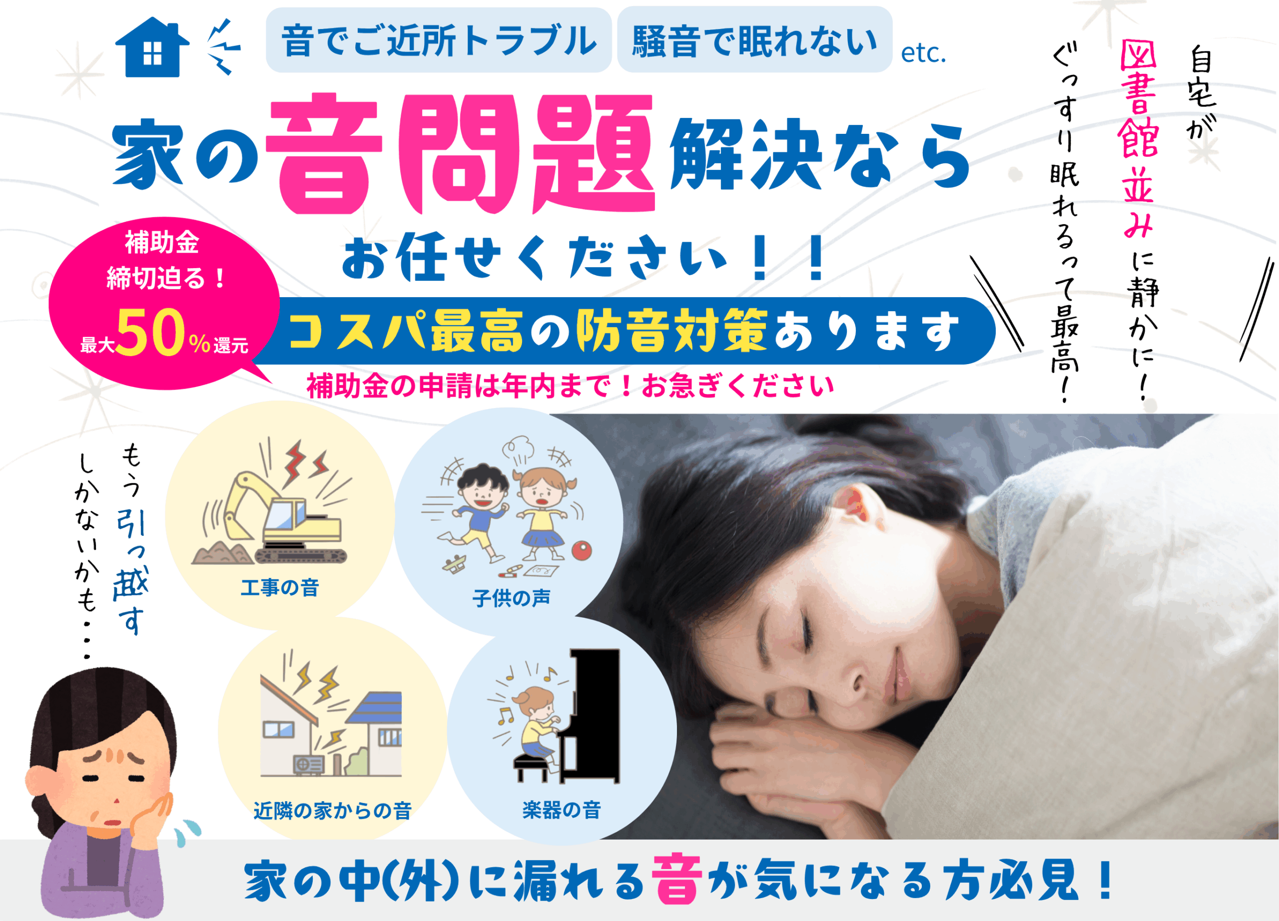外から入る音を低減し、同時に室内音が近隣に漏れるのも抑えることができます。